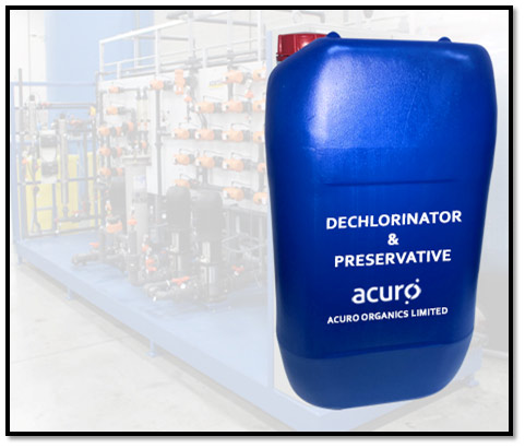 Feed water to membrane systems often has been treated with chlorine to retard microbiological growth prior to the membrane separation process. This chlorine, however, can irreversibly damage many thin film composite membranes. Dechlorinator for RO is a blend of high performance synthetic compounds, used for de-chlorination of RO feed water..