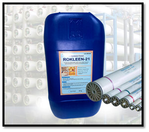 ROKLEEN 21 Low pH Membrane Cleaner is a fast acting formulation for cleaning of RO/NF/UF membranes by dissolving and dispersing organic and mineral deposits which primarily comprise of carbonates and sulfates of calcium, barium, stronium and magnesium.